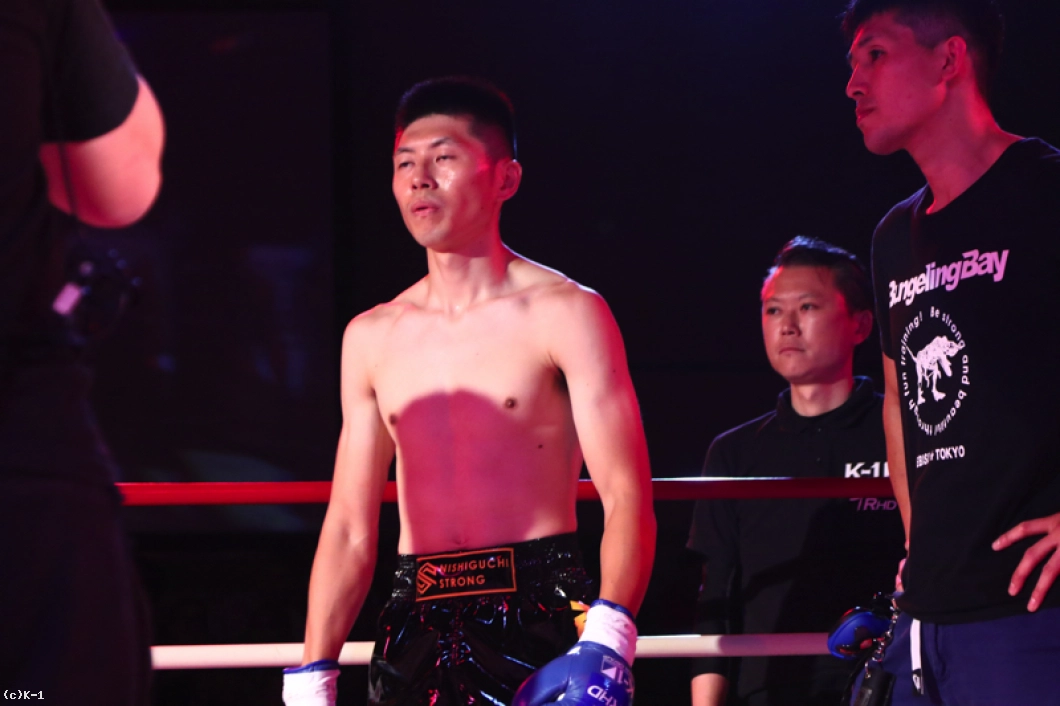 「(試合を振り返っての感想は?)やっぱり山際選手はトップクラス、チャンピオンクラスの選手ということで、蹴りが痛いと思って覚悟して試合に臨んだんですけど、やっぱ痛かったです(苦笑)。延長Rまで行きましたけど、それもセコンドの立ててくれた作戦通りに戦えて。僕は地味ですけど、3Rまで持ち堪えたら何とかいけるんじゃないかなと思って、セコンドを信じて戦えました。ありがとうございました。