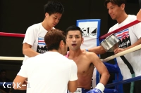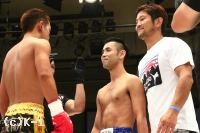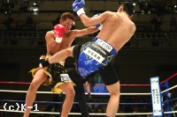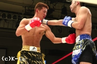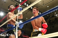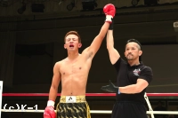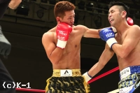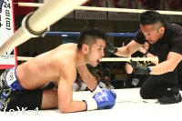 3R、足利は藤田に間合いを作らせまいと、ミドルやヒザを出しながら詰めていく。目がよくクリーンヒットは与えない藤田だが、次第に足利にロープ・コーナー際へと追い詰められていく。そして足利に左フック、右ストレートと集められ、気力が途切れたようにダウン。立ち上がるもダメージは明らかでレフェリーはここで試合をストップした。