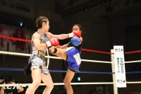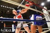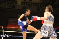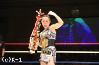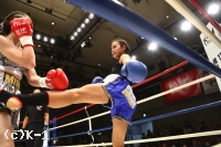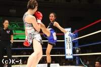 (判定を待っているときの気持ちは?)正直、ドローであってほしいという思いでした。(延長になったときは?)前に出るしかないと思いました。いまここで負けたらまたイチからのスタートになってしまうので。戦績を残している勝てばその先が見えると思い、気持ちだけで戦いました。(もしK-1で女子トーナメントが開催されれば興味はある?)いまの戦いかたで階級をあげるのは厳しいですが、練習次第だと思うので、チャンスがあれば出たいと思います。(今後の目標は?)強い相手を倒していける武器を磨いて、倒せる選手になっていきたいです」
