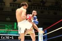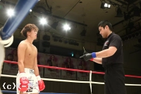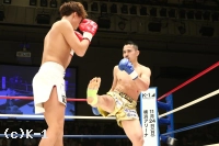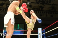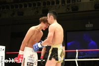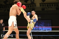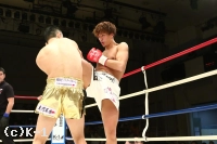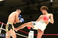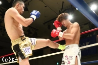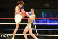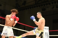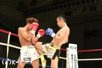 2R、新美は前蹴り&右ロー。しかし佐野はそこへワンツー、ストレートを合わせる。新美は右・左のローを放つが佐野がストレートを合わせてくるため蹴り辛そうにする。上背で優る佐野が前に出て新美に圧力を掛けていく。