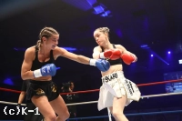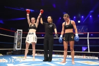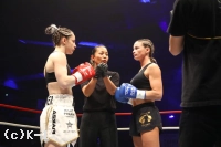 3R、ヨセフィンは左右前蹴りに右ストレート、左フックと速射砲のようにパンチを飛ばす。メロニーも距離を詰めて左ボディフック、右アッパーと攻めるが、ヨセフィンはバックステップで間合いを外す。フットワークのよさが光るヨセフィンはメロニーが強打を振るってきても、ここから足を使って回避して巧打を与えない。判定は30−28、30−28、30−29の3−0でヨセフィン。実力者同士の対決を制し、決勝で待つKANAとの三度目の対戦に進んだ。