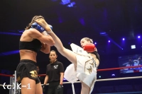 2R、ステップから切り込まんとするメロニーだが、ヨセフィンはそこに左フックをカウンター。前蹴りと左ハイキックを飛ばす。メロニーのタイミングを狂わせる。ヨセフィンはジャブ・前蹴りと動きにスピードがあり、メロニーを懐に入れさせない。メロニーが左右フックを振るっても、ヨセフィンはブロックで弾きこれを当てさせない。