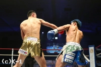 新美はさらに攻め、ボディへのヒザ、右フック、左ストレートと橋を攻める。パンチを返す橋だが、やや手打ちになっておりキレが乏しい。新美は左ミドル、右フックと橋を追う。