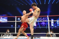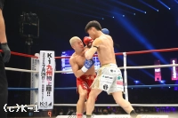 立ち上がったSATORUに友尊は右フックを追加しKOを狙う。SATORUはさすがにダメージが見え始め、前に出る勢いが落ちる。それでもラウンド終盤には再び前に出ていくが、跳びヒザに右フックを合わせ、友尊がSATORUにこのラウンド2度目のダウンを与える。