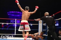 迅は立ち上がるもダメージがうかがわれ、吏羅は左ハイキックでアゴ先をとらえて倒し、迅をマットに沈めた。
