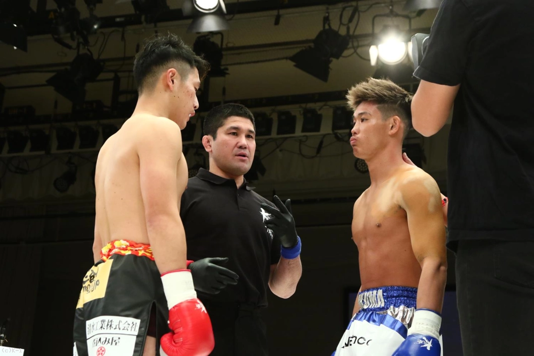 3R、三輪はパンチをガードで弾きながら前へ出て右ローキック。そして川口にバックブローを打ちつける。川口はボディフック、左フック、ミドルと反撃するが、足の踏ん張りがややきいていないか三輪に下がらされる。右ストレート、左フックに力を込める川口、三に対し輪もすぐ攻勢に戻り右ローを追加する。判定は30-29(三輪)、30-29(川口)、29-29の1-1でドロー。延長戦に突入となる。