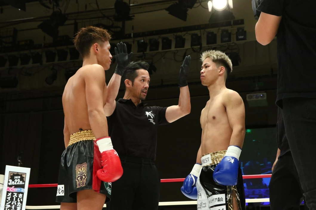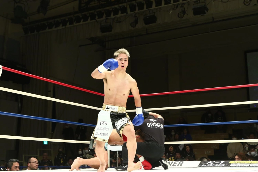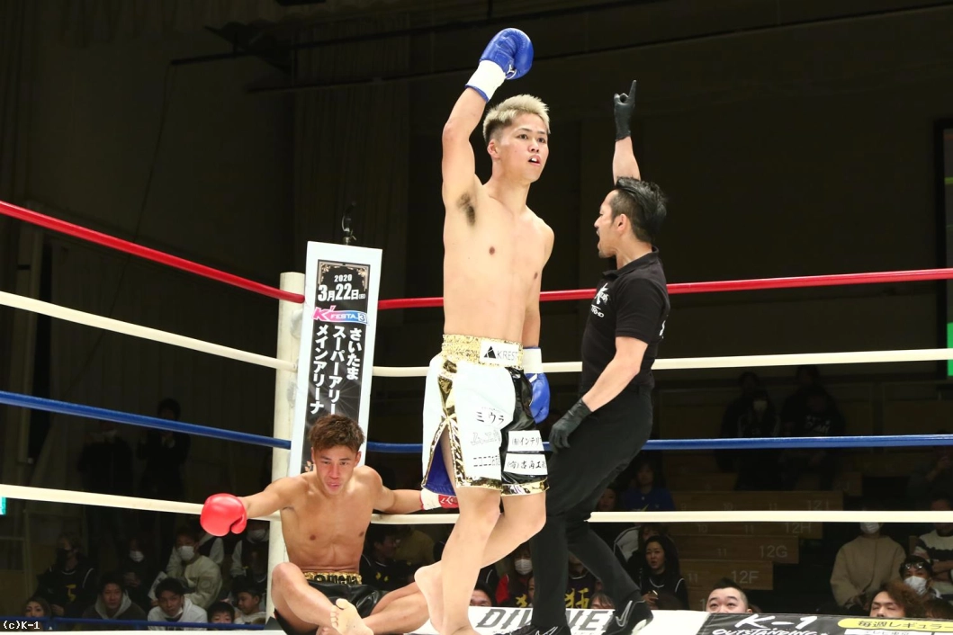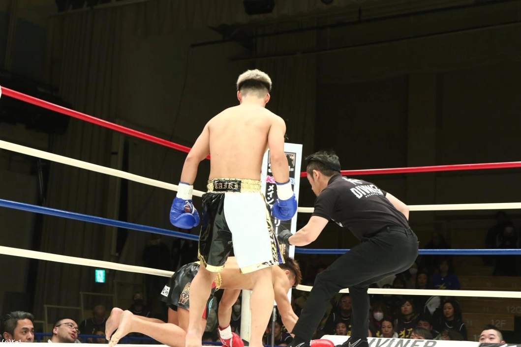 立ち上がった桑田に希山は再びジャストのタイミングで左フックを決めてダウンを追加し、Krushデビュー戦を勝利で飾った。