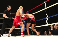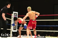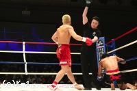 2R、ダメージのうかがえる久保に友尊は前蹴りから右フック、左ストレートと打ち込みダウンを奪取。そして久保が立ち上がるも友尊は逃がさず、左ストレートを突き刺してKO勝利を収めた。