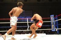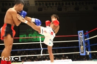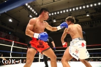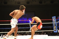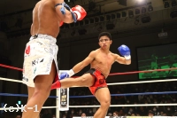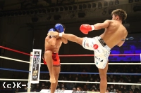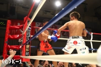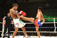 3R、スリヤンレックは俄然圧力を増し、右クロス、左フックと強振する。だが軍司も気持ちを引かず、右ストレート、左フックのカウンターで迎え撃つ。スリヤンレックは流れの中で投げる形になってしまい口頭注意を与えられる。スリヤンレックの振り回すパンチに巻き込まれるように打ち合いを展開する軍司。しかしその中で左ボディフックを打ち込み、たまらず背を見せたスリヤンレックに軍司が跳びヒザを見舞い、ここでレフェリーがスタンディングダウンを宣言する。