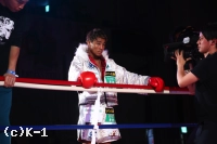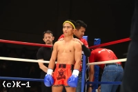 「(試合を振り返って?)1Rは恐怖心のほうが強くて、あんまり前に出れませんでした。でも相手の強さがわかってから徐々にいけて、ダウンっていうかたちで、判定で勝ってよかったです。自分の中ではKOで勝ちたかったっていうのはありますけど。(対戦相手の印象は?)いろんな人からタイ人のローキックは強いって聞いてたんですけど、自分はそこまで効いたっていう印象はなかったんで。そこでの部分ではやりやすかったです。
