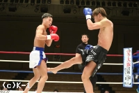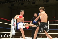 2R、立基は右ミドル、右ハイキックと放つが、水津はこれをクリーンヒットさせない。立基は1Rに比べ前に出て、右ストレート、左フックと水津を狙う。前進の圧力を増している立基に対し、水津は左インロー、左ストレートと応戦。だが、立基も右ストレート、左アッパーと攻撃が目立ってくる。さらに左ボディ、アッパーと立基は攻める。だが、その中でホールディングが見られ、立基はレフェリーから注意を受ける。しかしラウンド最後も立基が右ストレート、左ボディアッパーと打ち込み終了する。