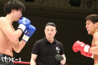 延長R、ジャブ・左ミドルと山本が先手で手を出す。そして伸ばした右クロスがとらえ、佐野はやや後退。ここを持ち直すと佐野は前に出て山本を押していく。のっしのっしと前に出て、プレッシャーをかける佐野だが、山本の右ストレートがヒット。両者近距離でボディを叩き合う。左右フックの佐野に対し山本は右ストレートで応戦する。判定は3者10-9で山本。延長戦で佐野を振り切り勝利した。