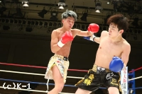 2R、左ストレート、右フックと強振していく橋本だが豊田はよく見て当てさせない。橋本の入り際に右フック、左ストレートを狙う。だが、橋本は強引ながら踏み込んでの右フックでダウンを奪う。ヒザにカウンターの左ストレートを合わせる橋本。ダメージが感じられる豊田だが、ジャブと前蹴り、左ハイと橋本に放つ。しかし橋本が今度は打ち下ろしの左ストレートで豊田を打ち倒しKOで勝利した。