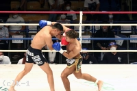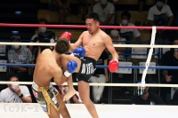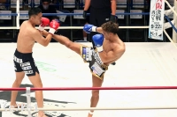 1R、鈴木はサウスポーから左ミドル、FUMIYAはオーソドックスから右ミドルと互いに蹴り合う。打って出たFUMIYAは右ストレートを伸ばしていくが、鈴木が逆に左ショートのストレートでとらえ先制のダウンを奪う。