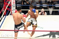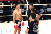 「(試合を振り返って?)FUMIYA選手はガンガン来ると思ったんで、そのときに冷静に対応しようと思っていました。打ち合うというよりは、ディフェンスのためのカウンターを取ったんですけど、それがいい具合に当たったのかなと思ってますね。(対戦相手の印象は?)FUMIYA選手のガンガンくるファイトスタイルは研究していたので、本当に想定内です。まあでも、早期決着はあまり考えていませんでした。1Rは危険な部分を出さないようにいこうと思ってたんですけど、思ったよりもパンチが見えたんで、ここで取れるなと思っていきました。(今後の目標は?)K-1のベルトを獲りにいきます。自分は絶対にトップを取ります」