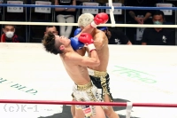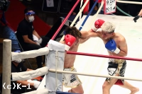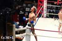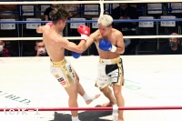 2R、鬼山はこのラウンドも重心を落としてジャブ・左フック・右ストレートと蒼士を追う。蒼士もこの圧力を遠ざけんと手を出すが、そこを鬼山は打ち合いに巻き込み、右アッパーから左フックを効かせ、さらに連打をフォローしてダウン奪う。立ち上がった蒼士に鬼山は右フックを連打で打ち込み、蒼士を再び倒してKOに沈めた。