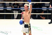 「(試合を振り返って?)蒼士選手、すごい強くて。セコンドとか自分を信じて、前に出た結果がKOにつながったんだと思います。(対戦相手の印象は?)最初から強いのは分かってたので。やってみて、予想どおり強いなって、試合中に感じました。(今後の目標は?)蒼士選手に勝ったので、もっともっとスーパー・バンタム級のトップの選手とやっていって、チャンピオンになりたいです」