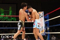 3R、中島がローを入れるが、山本はバックブローから距離を詰め、パンチからヒザ。中島もショートパンチからボディへのヒザを返す。両者近距離での打ち合いを続行。中島は左ローを入れるが、山本は飛びヒザから着地直後に左フックを決め、これに中島が座り込むようダウンを喫する。再開後、反撃に出る中島だが、山本が右ストレート、左フックで中島を下がらせる。判定は28−26、28−26、28−26の3−0で山本。両者計3度のダウンを喫した激戦を制した。