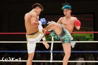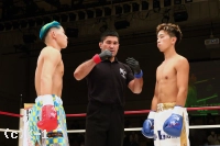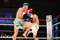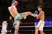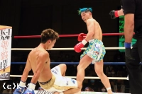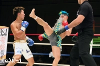 3R、山浦はローを当てて前に出ていく。森坂もロー、ボディへの後ろ回しと当てるが、山浦は勝利への気迫を見せて下がらない。森坂の左ミドルを受けても山浦はプレスを弱めず、右ストレート・左フックと振るう。森坂が跳びヒザ、山浦が左フック・右ストレートと攻撃を出し合うが、ここで森坂が放ったバックブローがヒット。山浦が終了間際に痛恨のダウンを喫する。判定は30−28、30−28、30−27の3−0で森坂。接戦から土壇場でダウンを奪い勝利を決めた。