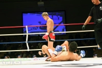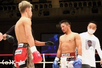 2R、右ミドルを浴びる秀樹だが、受けた直後に左フックを返して玖村をとらえる。秀樹はこのパンチに手応えがあったか、自信を感じさせ前に出る。だが、玖村も右の蹴りの本数を増やし秀樹を遠ざける。ミドルとハイを蹴り分けて進める玖村。そして飛びヒザから右ストレートにつないで、秀樹を腰砕けにしてダウンを奪う。再開後、玖村は立ち上がった秀樹に連打をまとめ、2度目のダウンを奪う。