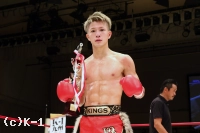 「1年ぶりの復帰戦で不安もあったんですけど、なんとかKOで勝ててホッとしています。(対戦相手の印象は?)パンチが強い印象がで、思ったより打たれ強かったです。1Rから倒れてもおかしくない攻撃が入ったのに倒れなくて。逆にパンチが強くて危ない場面もありました。(準決勝では新美貴士と対戦するが?)秀樹選手と同じようなタイプで頑丈でガンガンプレッシャーをかけてくると思います。今日と同じようにはいかないと思いますが、今日以上の倒し方をして決勝につなげたいと思います。(今後の目標は?)Krushのフェザー級は歴代すごいチャンピオンが巻いてきたベルトです。僕が準決勝の4人のうち一番覚悟があると思うし、ベルトが一番似合うと思います。これから試合までベルトが似合う選手になれるように練習して、2試合倒してチャンピオンになりたいと思います」