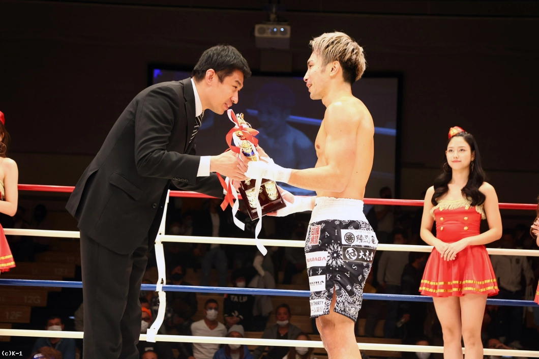 「(試合の感想は?)中野選手のテクニックを感じて、中野選手の強さが身に染みて分かりました。(相手の計量オーバーになって、どんな心境だった?)ルールがあってどの選手も必死に練習も日常も過ごして、お客さんもタイトルマッチを楽しみにしていたと思うので(中野は)プロとしてよくなかったと思います。古川会長も覚悟を持って中野選手を指導されていると思うし、選手はそういう会長の覚悟や期待に応えられるようにしなきゃいけない。自分自身も改めて思いました。(今後の目標は?)もちろんK-1での試合も考えています。今K-1スーパー・ライト級王者が大先輩の秀さん(山崎秀晃)で、いつもかっけえなと思いますし、だからこそ今回の試合も比較される試合だったと思います。自分はまだまだだと思うので、K-1のスケールでも自分の思いを届けられる選手になりたいと思います」