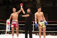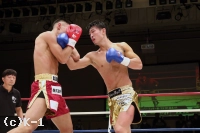 3R、安達は前に出て圧力で伊藤の間合いを潰し、ロー、跳びヒザ、ジャブと攻撃を上下に散らす。そして右クロス、左ボディフックと伊藤に決める。安達が攻勢となってくるが、伊藤は左ミドルを受けた直後に返した右フックでダウンを奪取。さらに攻めて右クロスを当てて終える。判定は30−28、30−28、30−28の3−0で伊藤。最終3Rに奪ったダウンで勝利をものにした。