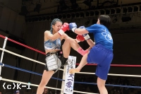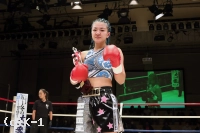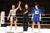 3R、倒さんとする気持ちの表れか真優はジャブ、前蹴りから前に出る。しかし小澤も前に出てくるため両者クリンチが多くなってしまう。小澤のヒザが下腹部に誤爆してしまい真優には一時インターバルが与えられる。真優は最後は小澤を押して出てミドル・前蹴り・バックブローと放って終える。判定は30−29、30−28、30−27の3−0で真優。勝利したが納得いく内容ではなかったか笑顔は見られなかった。