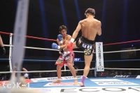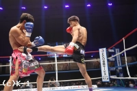 2R、大岩は朝久のインローに止まらず、強引に前へ出て右フックを強打する。朝久はこの圧力を横に回ってかわし、前蹴り・ロー・跳びヒザと蹴りを散らす。タフな大岩はこの攻撃に影響を見せず、パンチを打ちつける。だが朝久も左ストレート、顔面ヒザと打ち込む。