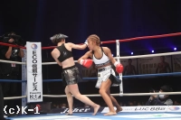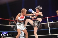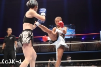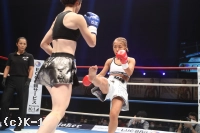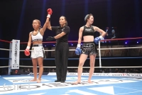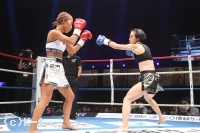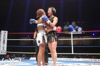 「(試合の感想は)ホント悔しいですね。自分的に手応えがあったけん、倒せた試合だったんですけど、詰めが甘かったっていうか。そこが次の課題かなと思います。(試合後も悔しそうでしたが)そうですね、やっぱ今回の大会にかける思いが強かった分、ホント悔しかったですね。(相手の印象は)去年のKrushに出させてもらった時に一緒に練習したことがあって、会場でも、『真子ちゃん頑張れ』って言ってもらったりしてて、それ以来やったんですよね。やけん、計量の時もお互い笑みが出ちゃったり、試合前とかもお互い笑って。そういうところでは緊張感がほぐれたというか。外からのパンチ、1発2発はもらったと思うんですけど、重かったなっていう印象があります。