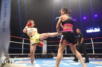 「(試合の感想は)勝ててホッとはしてるんですけど、詰めが甘くて『倒す』っていうのができなくて、反省してます。(相手の印象は)自分より身長が低い相手は今までやった中で初めてだったので、やりやすかったと言えばやりやすかったです。(相手の技術とか経験で感じた部分は?)自分が思ってたより、そんなに『強いな』っていうのは、あんまり感じられなかったです。でも三日月蹴りを狙われてたりして、女子で三日月蹴ってくる選手って今まであんまりいなかったので、そこ…ぐらいですかね。(勝ったことで、新設のミニマム級で一歩抜け出たわけですが)ぶっちゃけ、日本人の48kgって、他に強い選手いるのかなって思うので、コロナが落ち着いてトーナメントができるようになったら、外国人と戦ってトーナメントをやりたいです。(今後は)今日は本当に応援ありがとうございました。ちょっとしょっぱい試合しちゃったんですけど、次こそは絶対倒して、ミニマム級で倒せる女子は私っていう風に思わせる試合をするんで、これからも応援よろしくお願いします」