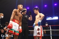 3R、パンチをまとめに来る江川に椿原は右ストレートを合わせる。攻撃がよく見えている椿原は江川の右スイングをダッキングしてかわす。椿原は右ストレート、前蹴りといった距離の長い攻撃を使い、依然として江川を懐に入らせない。そして右ミドル、右ストレート、右フックと椿原が攻撃のヒット数を上げる。精度で上回る椿原が右ストレート、左ハイと放ち、攻勢を印象づけて終える。判定は30−29、30−30、30−28の2−0で椿原。江川の攻撃量を空回りさせ、大番狂わせを果たした。