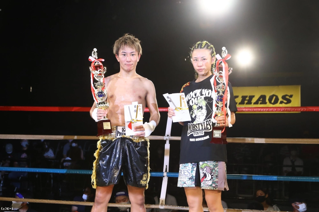 「俺は女が大好きなんで、バンタムのKrushのトーナメントがちょっと前に決まって萎えていたんですけど、優勝したんで1週間ぐらい女遊びしようかと思ってます。KHAOSガールズと食事会をしたいんですけど、俺はまだまだここで終わらないし、まだまだ強くなってるんで、練習もっともっとやって、みなさんにまた試合を見てもらえたらと思います。
