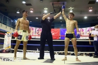 2R、突進する篠原に対して、愛瑠斗は回転の早いパンチのコンビネーションから左ミドルと奥足ロー。愛瑠斗はスピードと手数で篠原を上回る。3R、前に出る篠原vs距離をとってスピーディな攻撃を当てる愛瑠斗という展開のまま試合終了。愛瑠斗が判定3-0で勝利をもぎとった。