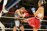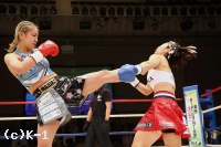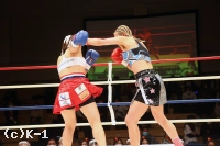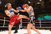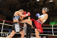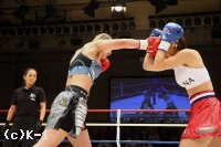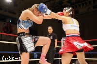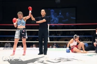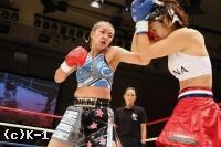 2R、前に出んとするNA☆NAに真優は前蹴り。ミドルでもボディをとらえ、パンチを連係していく。そしてNA☆NAの顔面を前蹴りで打ち抜くと、NA☆NAがダウン。鮮やかな足技で真優がKO勝利し、4月Krush後楽園大会での決勝へ進んだ。