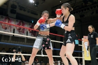 1R、オーソドックスの真優に対し、壽美はサウスポー。壽美はサウスポーを活かした左ストレート、右フックを当てる。真優が右ストレートを当て前に来ても、壽美はすぐに左ストレートを振り返し真優を下がらせる。プレッシャーを掛ける壽美だが、真優もカウンターの右ストレートを当てて終える。