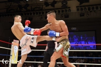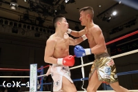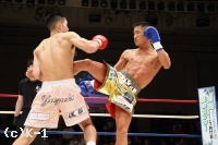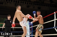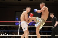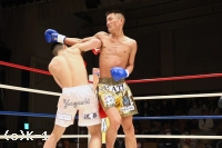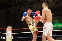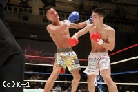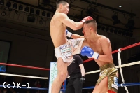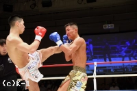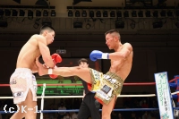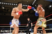 1R、里見はサウスポーでプレッシャーを掛け右フックをオープニングヒット。さらに左ボディストレート、右フックと攻める。堀井はこれに右ミドル、右ロー、右前蹴りと蹴りを多用して応戦。序盤仕掛けた里見に対し、中盤以降は堀井が蹴りながら前に出て押していく。里見もしかし蹴りの合間を縫って左ストレートを当てる。