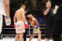 2Rも里見は開始から前に来て左ストレート、左ハイと堀井を下がらせ、ロープ際で左ストレートをヒット。前蹴りと右ミドルで応戦する堀井だが後退ベースとなってしまう。里見に対し、やや手を焼いているかの印象であった堀井だが、バックブロー、右ストレートと当て2Rを終える。