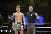 「最初びっくりしました、倒されて。Krush初参戦でこういう勝ち方が出来てよかったです。(迅也とは)試合が決まる前から何回か一緒に練習していて、試合が決まった時にびっくりしました。ライト級のトップ戦線を狙えるように頑張ります」