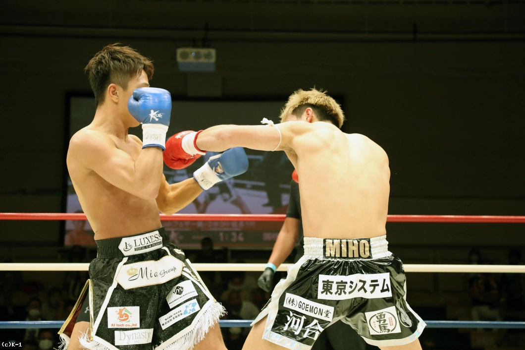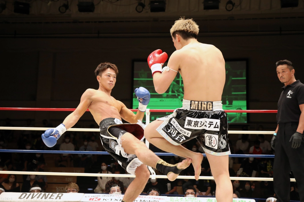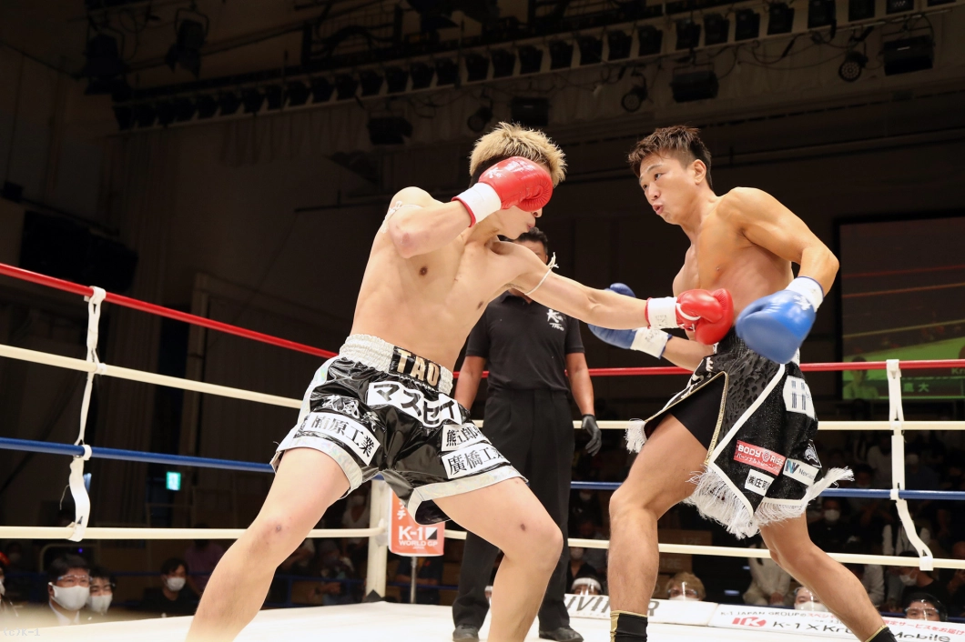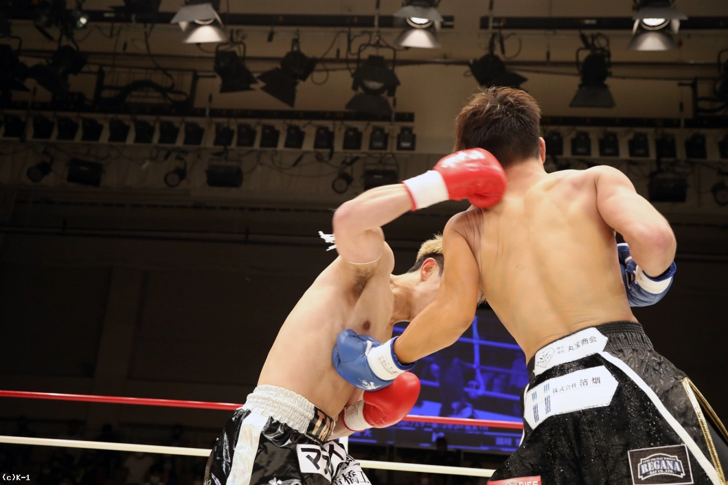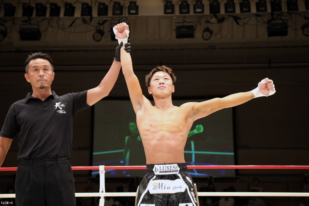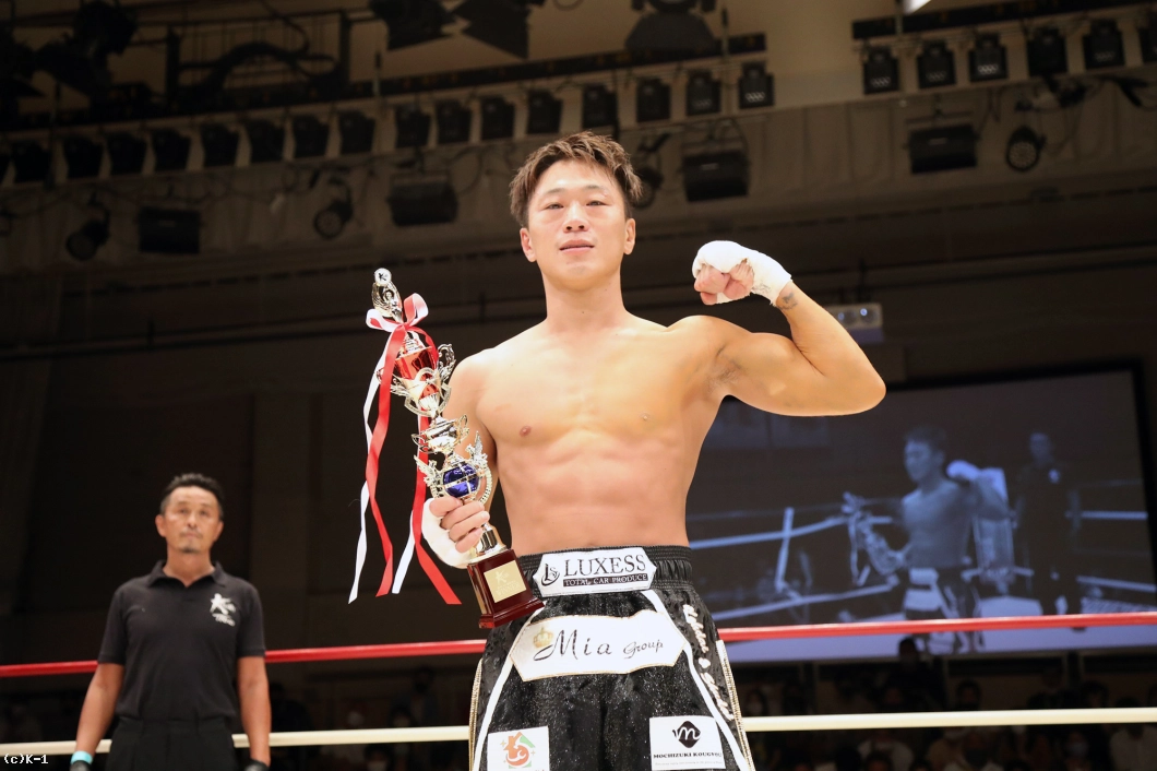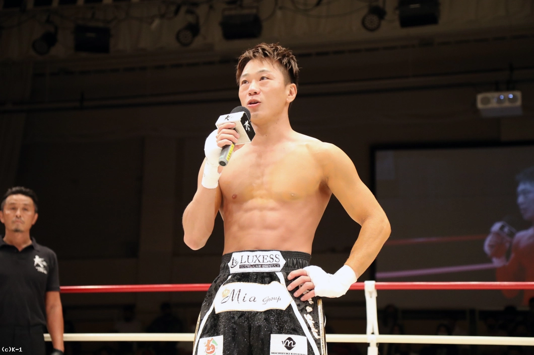「セコンドに言われた通りに出来て、ボディで倒せてよかったです。(対戦相手の印象は?)3本ベルトを持っていて、ムエタイの選手ということで、もっと蹴って前に出てくるかなと思ったんですけど、思ったより出てこなかったです。(今後の目標は?)森坂選手に勝っている鷹大選手に勝ったんで、王座決定トーナメントに出ていた他の選手、あわよくばチャンピオンの新美選手ともノンタイトルで戦いたいです。まあでもK-1 JAPAN GROUPに来て3戦なので、色んな選手とやっていきたいです」