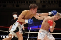 3R、前に出て圧力を掛け、里見の間合いを潰していく弘輝。里見のカウンターをズラして直撃させず、弘輝は顔からボディへのフックに繋げる。しかし里見は左フックをヒット。弘輝はややヨロめくがフックをリターン。だが里見がさらに左ストレートを打ち込み終了する。