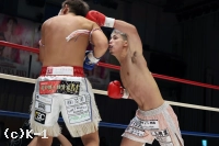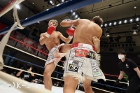 1R、両者サウスポーで対峙しともにローキックを飛ばす。弘輝が左フックを振るえば、里見も左クロスを当て返す。さらに弘輝、里見と左を当て合う。里見は左ボディストレートから左ハイキック。里見がバックスピンキックを見せると、弘輝が飛びヒザを見せ、里見がこれをキャッチして初回を終える。