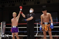 3R開始とともに倉田が前進、しかし西林が右ストレートを決めダウンを奪取。立ち上がった倉田は向かっていくが、西林は右アッパーを突き上げる。倉田はダウンの挽回に圧力を増すが、西林も負けずに押し返し、ステップとボディワークからバックブロー、バックスピンキックと見せる。倉田もミドルと左右フックを振り回すがクリーンヒットを得られない。判定は30-28、29-28、29-28の3-0で西林。緊急参戦のチャンスをものにし勝利した。