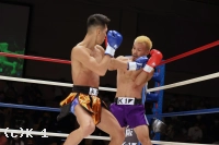 2R、前に出る西林だが、倉田が右ショートフックをヒット。西林がバックスピンキックを出せば、倉田も同じ技を返す。上背で劣る西林だが、右ストレート、右クロス、左ボディフックとヒット。そして右アッパーと倉田にヒットを重ねていく。だが倉田も出返してヒザを決め終える。