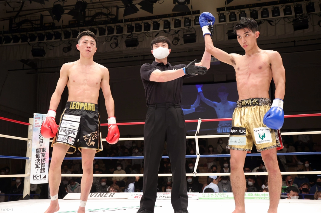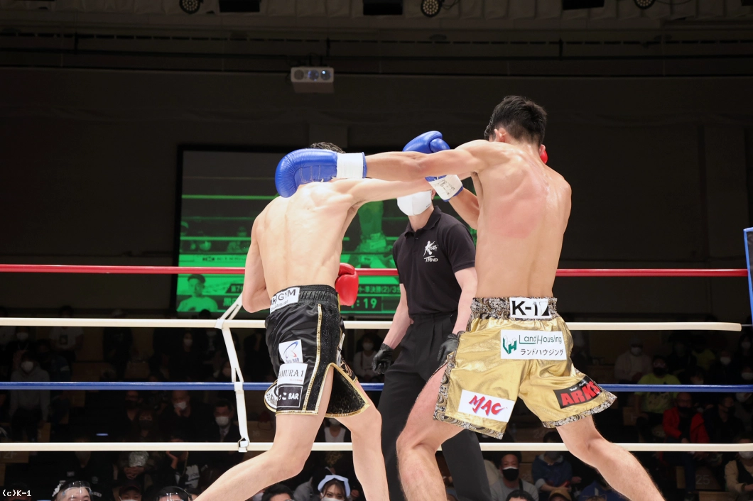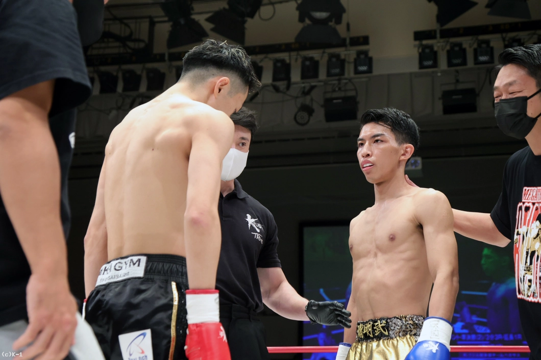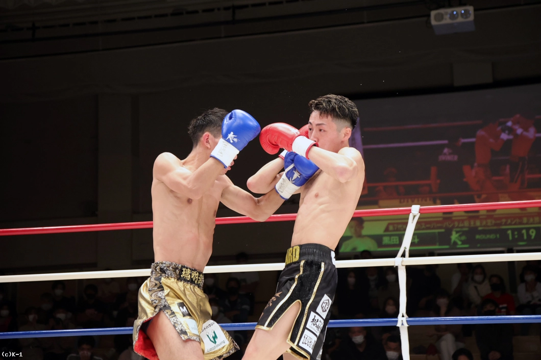 3R、ダウンの挽回に前へ出る黒田だが、璃明武はやはりステップバックして距離を詰めさせず、カーフキックで黒田の体勢を崩す。黒田はロー、ミドルと放っていくが璃明武に見切られクリーンヒットできない。飛びヒザも放つが、璃明武はよく見えておりブロックする。判定は30-28、30-28、30-28の3-0で璃明武。鬼山の待つ決勝に進んだ。