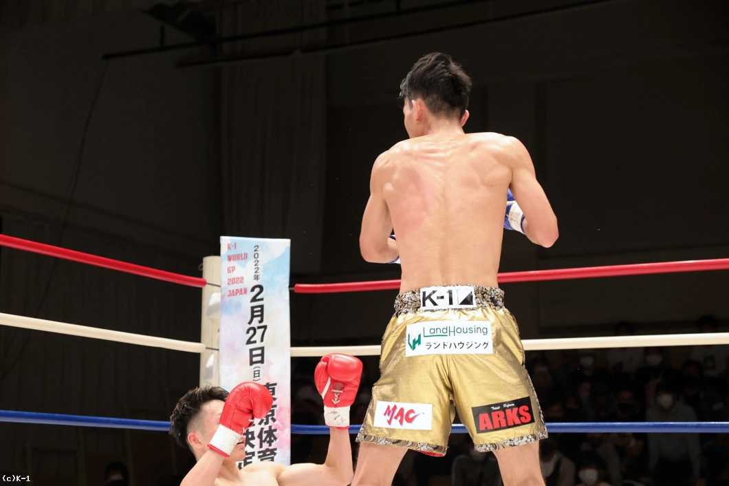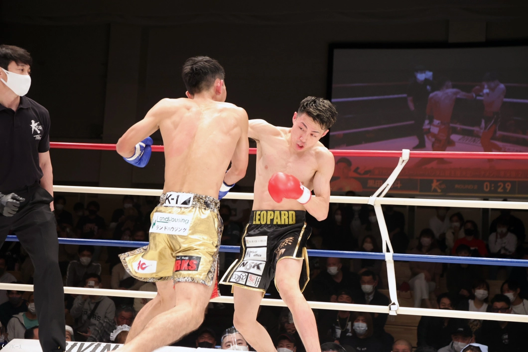 2R、黒田も圧力を増して出て、ジャブあるいは左フックから右ローを繋ぐ。この蹴りがローブローとなってしまい体力回復にインターバルが取られた璃明武だが、再開すると直後に右ヒザを黒田の顔にヒット。これでダウンを奪取する。ダメージの見られる黒田に璃明武は左ボディから顔への左フック、ボディへの後ろ回し蹴りと攻めるが、ここは黒田がしのいで終了する。