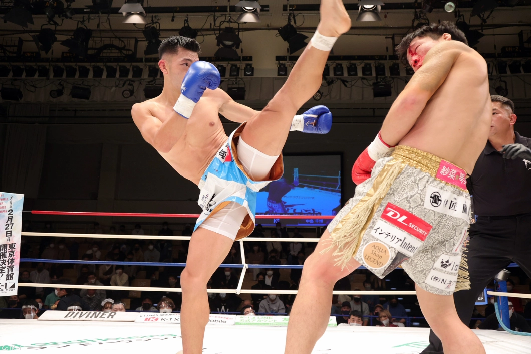 「SATORU選手は向かい合って、とても気迫のある目と顔つきをしていて、ちょっとでも油断したら勢いでやられちゃうなと思ったんで最後まで集中して戦いました。(準決勝は友尊と対戦になったが?)元ボクサーということもあって、試合映像を見てもパンチが上手くてカウンターだったり、ムエタイの蹴りもできるんで、何でもできる選手だと思っています。(準決勝・決勝に向けて)あと3カ月くらいあるんで、しっかり練習して優勝できるように頑張ります」