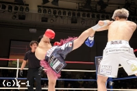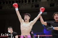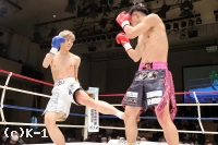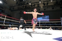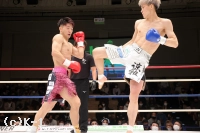 2R、横山はジャブ、ローと手数を増す。依然関節蹴りでけん制していた松本だが、横山はボディブローを強打し、これを意識させた後で左ストレートをヒット。横山はさらにボディストレートも織り交ぜ、松本の意識を上下に散らす。松本がハイキックを見舞うと横山はハイキックを返して当て、下がった松本を飛びヒザで追い、左・右・左とフックの3連打でなぎ倒してKOした。