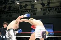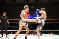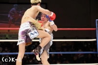 2R、池田の強い右ミドルに合わせ藤田がワンツーで応戦。カウンターの右オーバーハンドフックで池田にプレッシャーを与える。距離を詰め左ボディ・左アッパーとパンチを上下に散らす藤田へ、池田は飛びヒザ蹴り。冷静にガードを固める藤田はコーナーを背負う池田に右フックから左ボディとコンビネーションをヒット。頭を振りながらフル左フックを浴び、池田が小さくぐらつく。池田は左右ストレートで突き放し、飛びヒザ蹴りを突き上げ藤田のアゴを跳ね上げる。