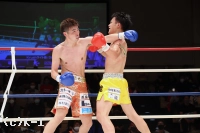 延長R、サウスポーからの右フックで襲いかかる迅也。竜樹も右ストレートから左フックで応戦、下がる迅也を右ミドルで追撃する。パンチで押し返そうとする迅也へ放った竜樹の左フックで迅也がダウンを喫する。立ち上がった迅也をコーナーに押し込み右フックを叩き込んだ竜樹が2度目のダウンを奪うと、ここでレフェリーが試合ストップ。竜樹が大接戦を力尽くで制した。